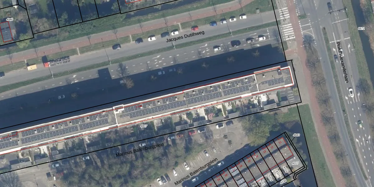 Jacques Dutilhweg 50 is gelegen op kadastraal perceel KLG00C4807. Deze kadastrale aanduiding is uniek en wordt gebruikt door het Kadaster om eigendomsrechten en andere zakelijke rechten vast te leggen. Het perceel maakt onderdeel uit van de kadastrale gemeente Kralingen.