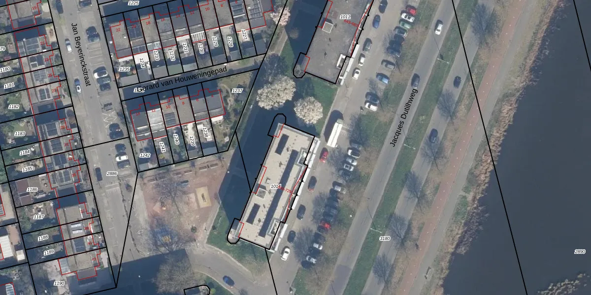 Het perceel waarop Jacques Dutilhweg 689 staat heeft een oppervlakte van 612 m². Dit is een groot perceel. De perceeloppervlakte wordt geregistreerd door het Kadaster. Gedetailleerde informatie over de maten van dit perceel kunt u vinden in het rapport Kadastrale kaart met maatvoering van Jacques Dutilhweg 689.