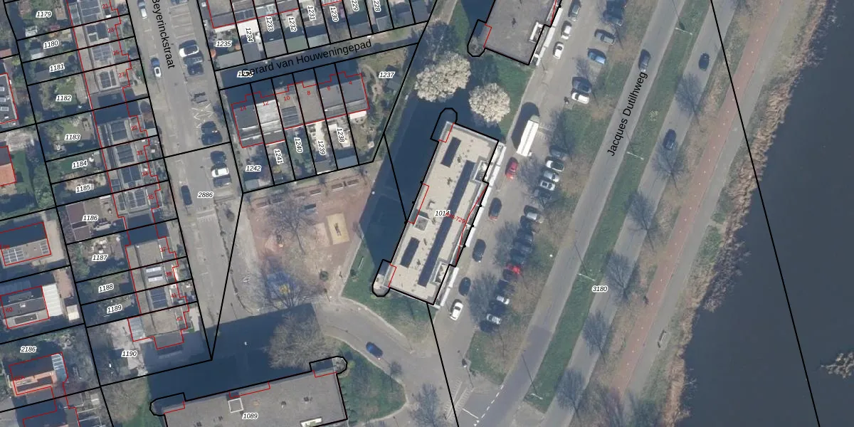 Het perceel waarop Jacques Dutilhweg 707 staat heeft een oppervlakte van 612 m². Dit is een groot perceel. De perceeloppervlakte wordt geregistreerd door het Kadaster. Gedetailleerde informatie over de maten van dit perceel kunt u vinden in het rapport Kadastrale kaart met maatvoering van Jacques Dutilhweg 707.