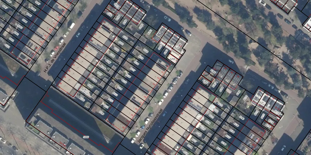 Jacques Nycolaasstraat 13 is gelegen op kadastraal perceel RTD05Q6118. Deze kadastrale aanduiding is uniek en wordt gebruikt door het Kadaster om eigendomsrechten en andere zakelijke rechten vast te leggen. Het perceel maakt onderdeel uit van de kadastrale gemeente Rotterdam.
