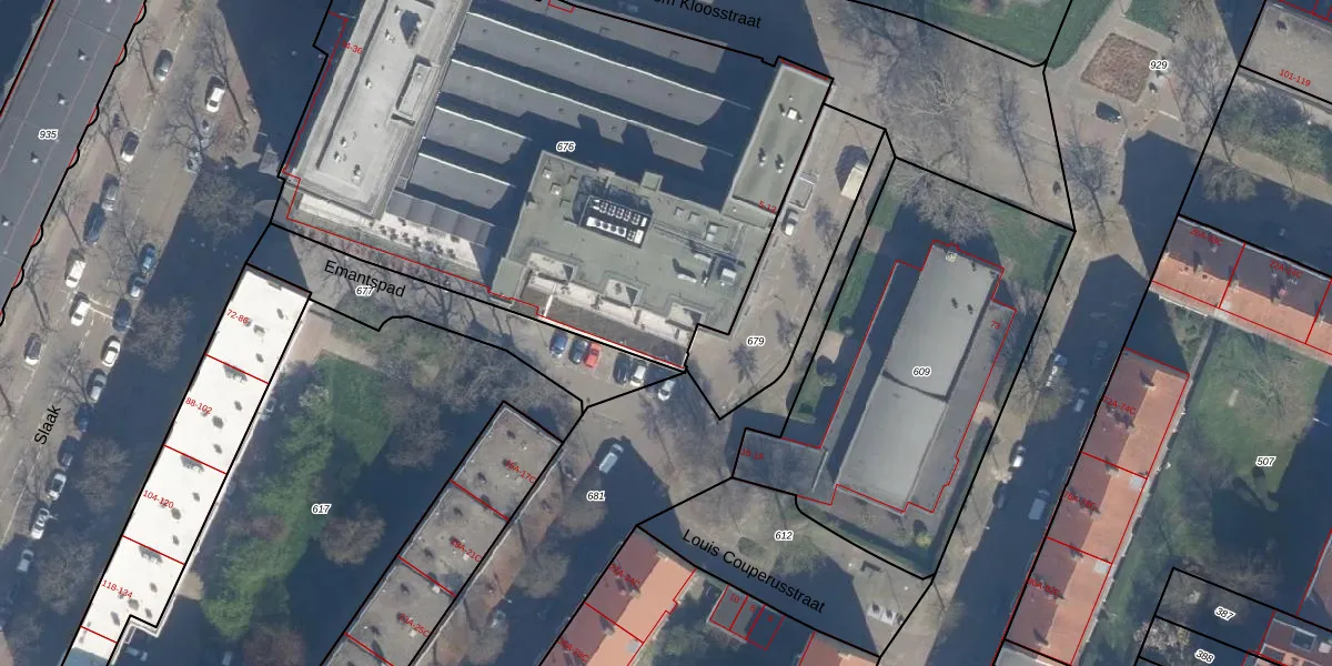 Het adres ligt op het perceel RTD04-AE-676, dat zich in de kadastrale gemeente Rotterdam bevindt. De oppervlakte van het perceel is 3340 m². Dat is groter dan gemiddeld in Rotterdam, waar de gemiddelde perceeloppervlakte op 1240,47 m² ligt. Het grootste perceel in de kadastrale gemeente is 17,3 ha. Het kleinste perceel heeft een oppervlakte van 0 m². Op het perceel zijn 5 adressen aanwezig. In de Basisregistratie Kadaster (BRK) werden de grenzen van het perceel geregistreerd op 12-05-2004.