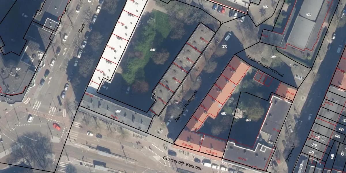 Jacques Perkstraat 25-A is gelegen op kadastraal perceel RTD04AE616. Deze kadastrale aanduiding is uniek en wordt gebruikt door het Kadaster om eigendomsrechten en andere zakelijke rechten vast te leggen. Het perceel maakt onderdeel uit van de kadastrale gemeente Rotterdam.