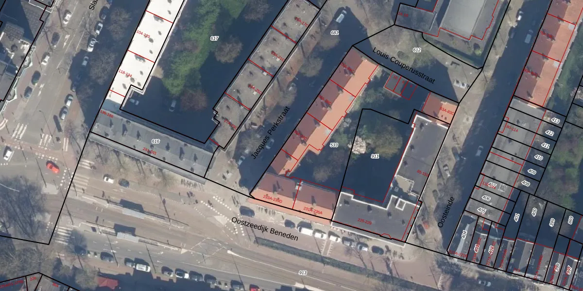 Jacques Perkstraat 32-A is gelegen op kadastraal perceel RTD04AE533. Deze kadastrale aanduiding is uniek en wordt gebruikt door het Kadaster om eigendomsrechten en andere zakelijke rechten vast te leggen. Het perceel maakt onderdeel uit van de kadastrale gemeente Rotterdam.