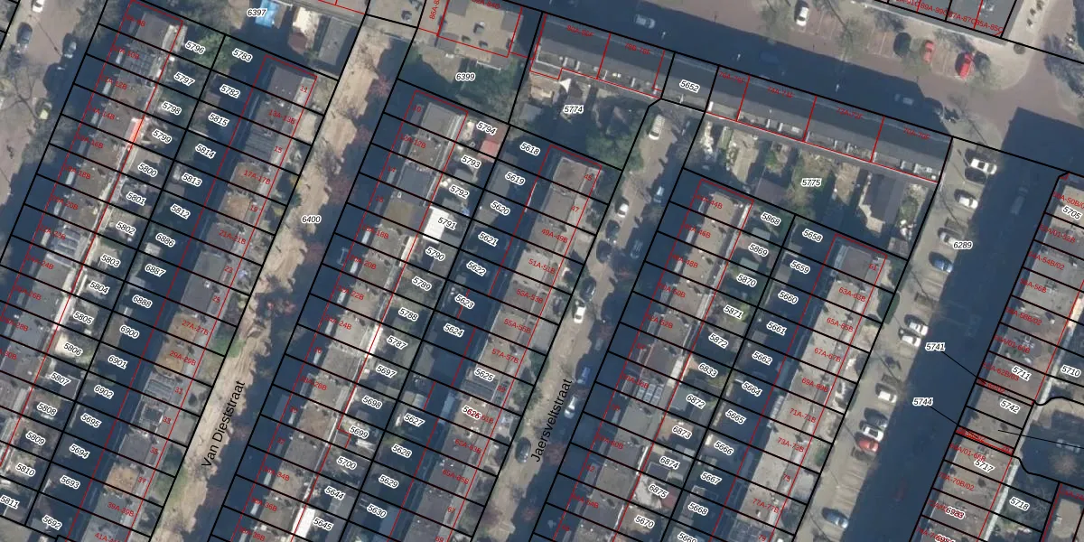 Jaersveltstraat 51-B is gelegen op kadastraal perceel CLS00B5621. Deze kadastrale aanduiding is uniek en wordt gebruikt door het Kadaster om eigendomsrechten en andere zakelijke rechten vast te leggen. Het perceel maakt onderdeel uit van de kadastrale gemeente Charlois.