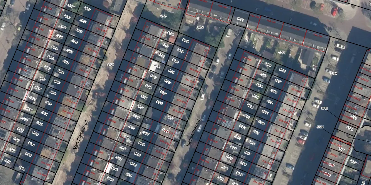 Jaersveltstraat 53-B is gelegen op kadastraal perceel CLS00B5622. Deze kadastrale aanduiding is uniek en wordt gebruikt door het Kadaster om eigendomsrechten en andere zakelijke rechten vast te leggen. Het perceel maakt onderdeel uit van de kadastrale gemeente Charlois.