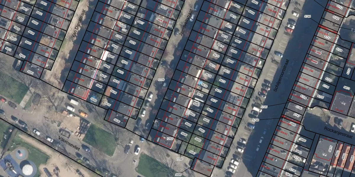 Jaersveltstraat 72-A is gelegen op kadastraal perceel CLS00B5678. Deze kadastrale aanduiding is uniek en wordt gebruikt door het Kadaster om eigendomsrechten en andere zakelijke rechten vast te leggen. Het perceel maakt onderdeel uit van de kadastrale gemeente Charlois.