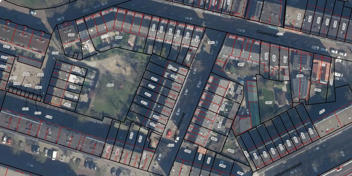 Jaersveltstraat 9-B is gelegen op kadastraal perceel CLS00E3816. Deze kadastrale aanduiding is uniek en wordt gebruikt door het Kadaster om eigendomsrechten en andere zakelijke rechten vast te leggen. Het perceel maakt onderdeel uit van de kadastrale gemeente Charlois.