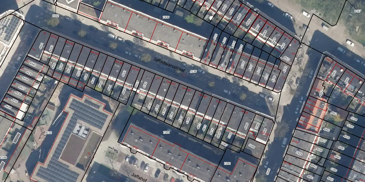Het perceel waarop Jaffadwarsstraat 18-B staat heeft een oppervlakte van 110 m². Dit is een middelgroot perceel. De perceeloppervlakte wordt geregistreerd door het Kadaster. Gedetailleerde informatie over de maten van dit perceel kunt u vinden in het rapport Kadastrale kaart met maatvoering van Jaffadwarsstraat 18-B.