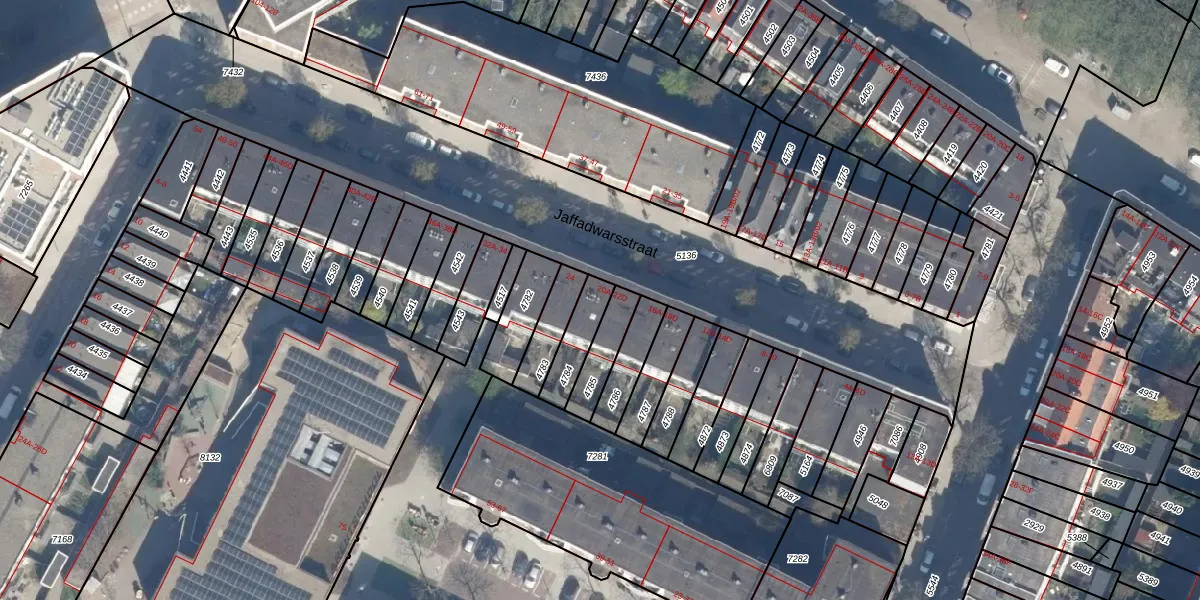 Het perceel waarop Jaffadwarsstraat 22-A staat heeft een oppervlakte van 104 m². Dit is een middelgroot perceel. De perceeloppervlakte wordt geregistreerd door het Kadaster. Gedetailleerde informatie over de maten van dit perceel kunt u vinden in het rapport Kadastrale kaart met maatvoering van Jaffadwarsstraat 22-A.