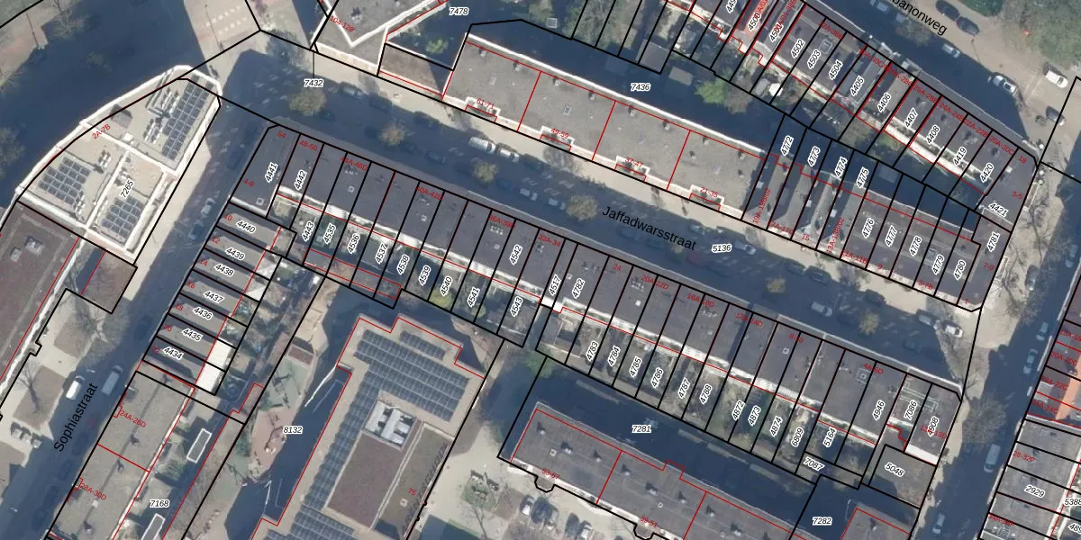 Jaffadwarsstraat 32-A is gelegen op kadastraal perceel RTD07R4543. Deze kadastrale aanduiding is uniek en wordt gebruikt door het Kadaster om eigendomsrechten en andere zakelijke rechten vast te leggen. Het perceel maakt onderdeel uit van de kadastrale gemeente Rotterdam.