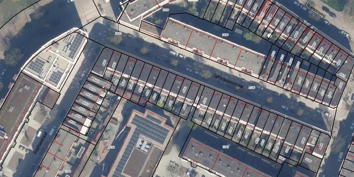 Het perceel waarop Jaffadwarsstraat 38-C staat heeft een oppervlakte van 100 m². Dit is een middelgroot perceel. De perceeloppervlakte wordt geregistreerd door het Kadaster. Gedetailleerde informatie over de maten van dit perceel kunt u vinden in het rapport Kadastrale kaart met maatvoering van Jaffadwarsstraat 38-C.