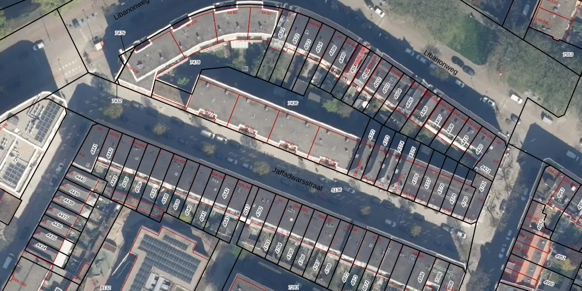 Het perceel waarop Jaffadwarsstraat 39 staat heeft een oppervlakte van 1325 m². Dit is een zeer groot perceel. De perceeloppervlakte wordt geregistreerd door het Kadaster. Gedetailleerde informatie over de maten van dit perceel kunt u vinden in het rapport Kadastrale kaart met maatvoering van Jaffadwarsstraat 39.