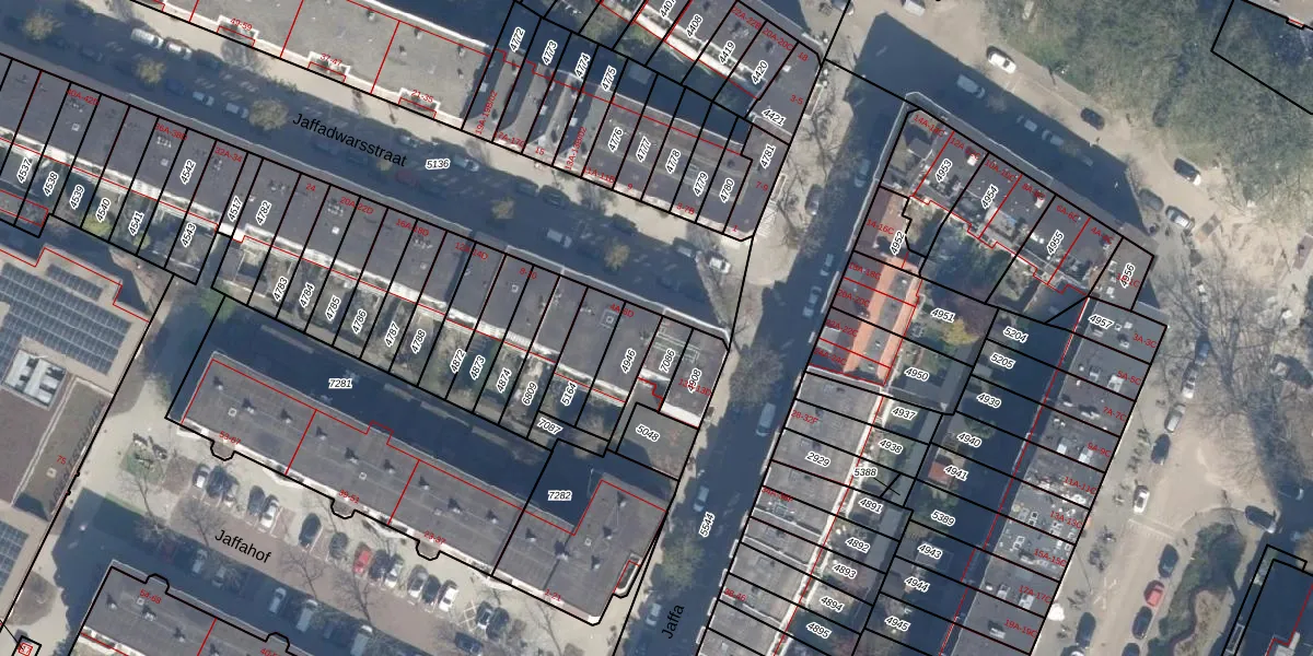Het perceel waarop Jaffadwarsstraat 4-D staat heeft een oppervlakte van 119 m². Dit is een middelgroot perceel. De perceeloppervlakte wordt geregistreerd door het Kadaster. Gedetailleerde informatie over de maten van dit perceel kunt u vinden in het rapport Kadastrale kaart met maatvoering van Jaffadwarsstraat 4-D.