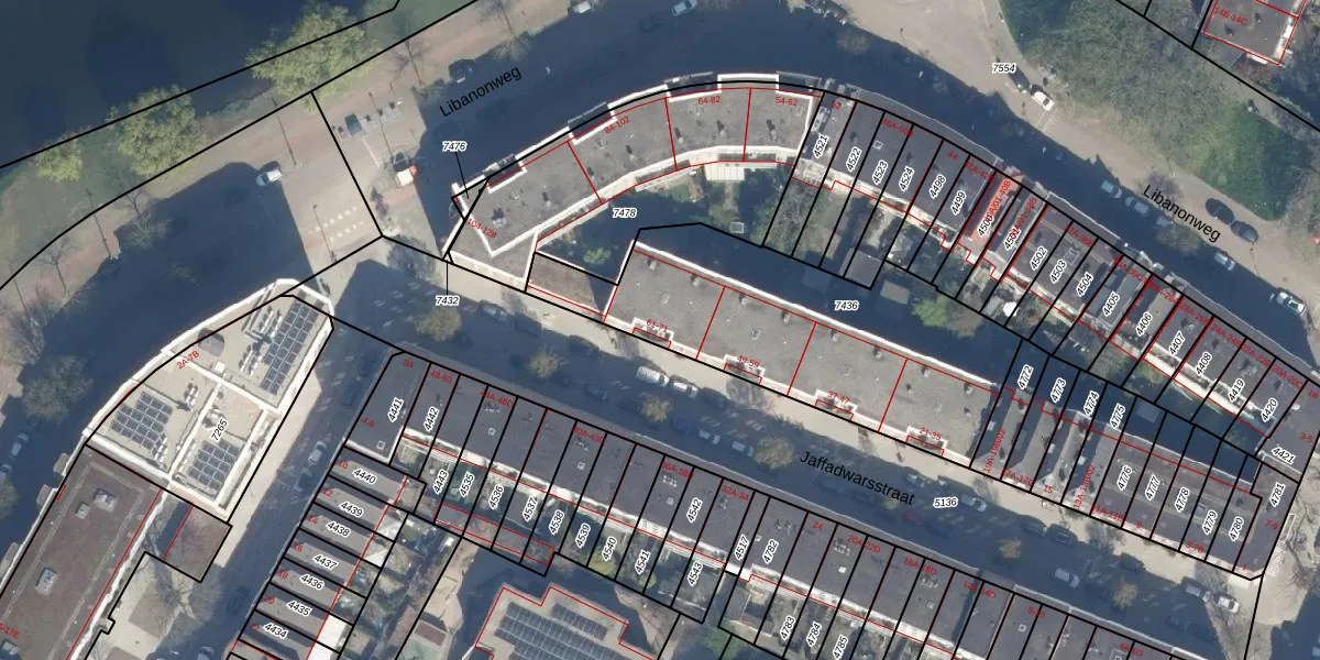 Het perceel waarop Jaffadwarsstraat 65 staat heeft een oppervlakte van 1325 m². Dit is een zeer groot perceel. De perceeloppervlakte wordt geregistreerd door het Kadaster. Gedetailleerde informatie over de maten van dit perceel kunt u vinden in het rapport Kadastrale kaart met maatvoering van Jaffadwarsstraat 65.