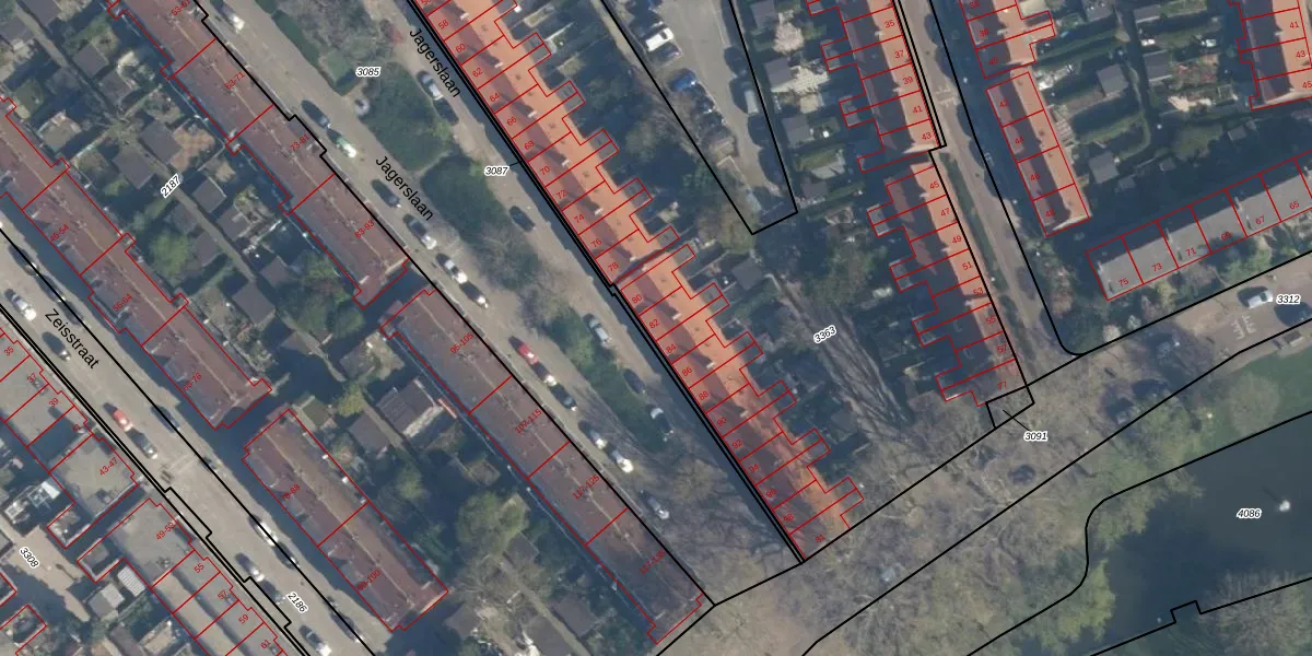 Jagerslaan 82 is gelegen op kadastraal perceel CLS00F3363. Deze kadastrale aanduiding is uniek en wordt gebruikt door het Kadaster om eigendomsrechten en andere zakelijke rechten vast te leggen. Het perceel maakt onderdeel uit van de kadastrale gemeente Charlois.