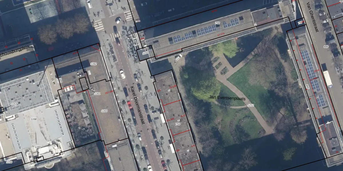 Het perceel waarop Jan Evertsenplaats 15-B staat heeft een oppervlakte van 918 m². Dit is een groot perceel. De perceeloppervlakte wordt geregistreerd door het Kadaster. Gedetailleerde informatie over de maten van dit perceel kunt u vinden in het rapport Kadastrale kaart met maatvoering van Jan Evertsenplaats 15-B.