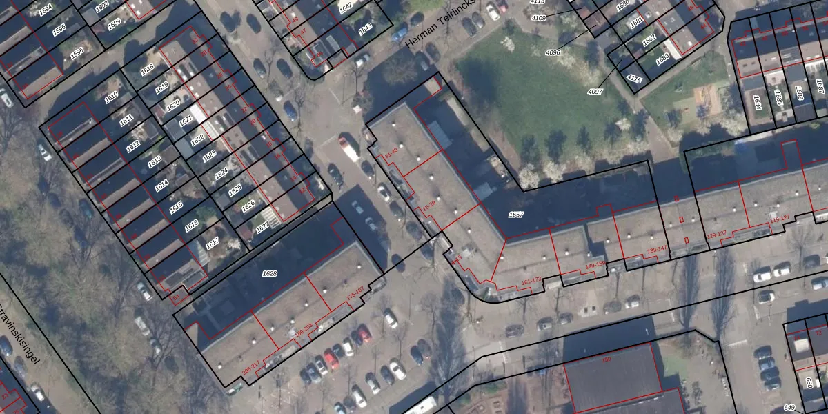 Het perceel waarop het adres ligt is RTD13-BA-1657. De afkorting 'RTD13' staat voor kadastrale gemeente Rotterdam. De gemiddelde perceeloppervlakte in de kadastrale gemeente Rotterdam is 583,29 m². Dit perceel is met zijn 1988 m² dus groter dan gemiddeld. De grootste perceeloppervlakte in de kadastrale gemeente is 9,3 ha. De kleinste oppervlakte bedraagt 3 m². Op het perceel zijn 40 adressen aanwezig. De huidige grenzen van het perceel zijn digitaal in de Basisregistratie Kadaster (BRK) geregistreerd op 07-09-2010.