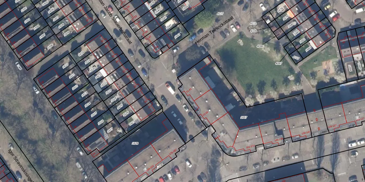 Het perceel waarop het adres ligt is RTD13-BA-1657. De afkorting 'RTD13' staat voor kadastrale gemeente Rotterdam. De gemiddelde perceeloppervlakte in de kadastrale gemeente Rotterdam is 583,29 m². Dit perceel is met zijn 1988 m² dus groter dan gemiddeld. Het grootste perceel in de kadastrale gemeente is 9,3 ha. Het kleinste perceel heeft een oppervlakte van 3 m². Er zijn 40 adressen aanwezig op het perceel. De laatste wijziging in het de Basisregistratie Kadaster (BRK) was op 07-09-2010.