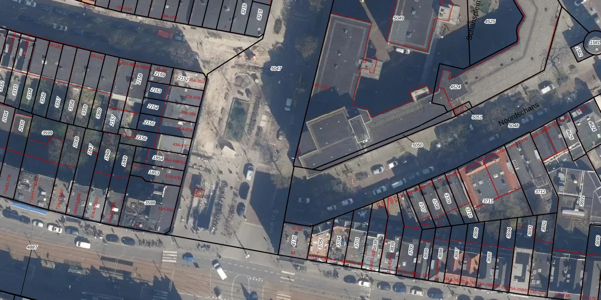Het adres ligt op het perceel DHV00-H-5049, dat zich in de kadastrale gemeente Delfshaven bevindt. Het perceel is met 4257 m² relatief groot. Het gemiddelde ligt in de kadastrale gemeente Delfshaven op 628,53 m². De grootste perceeloppervlakte in de kadastrale gemeente is 22,2 ha. De kleinste oppervlakte bedraagt 0 m². Er zijn 136 adressen aanwezig op het perceel. De huidige grenzen van het perceel zijn digitaal in de Basisregistratie Kadaster (BRK) geregistreerd op 05-03-2009.