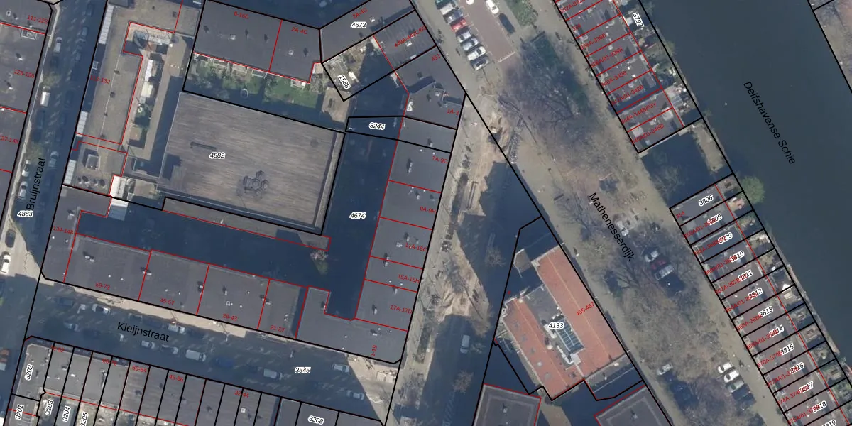 Het perceel waarop het adres ligt is DHV00-H-4674. De afkorting 'DHV00' staat voor kadastrale gemeente Delfshaven. De gemiddelde perceeloppervlakte in de kadastrale gemeente Delfshaven is 628,53 m². Dit perceel is met zijn 3835 m² dus groter dan gemiddeld. De grootste perceeloppervlakte in de kadastrale gemeente is 22,2 ha. De kleinste oppervlakte bedraagt 0 m². Op het perceel zijn 105 adressen aanwezig. In de Basisregistratie Kadaster (BRK) werden de grenzen van het perceel geregistreerd op 05-03-2009.