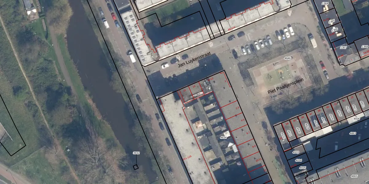 Het perceel waarop Jan Luykenstraat 16 staat heeft een oppervlakte van 2575 m². Dit is een zeer groot perceel. De perceeloppervlakte wordt geregistreerd door het Kadaster. Gedetailleerde informatie over de maten van dit perceel kunt u vinden in het rapport Kadastrale kaart met maatvoering van Jan Luykenstraat 16.