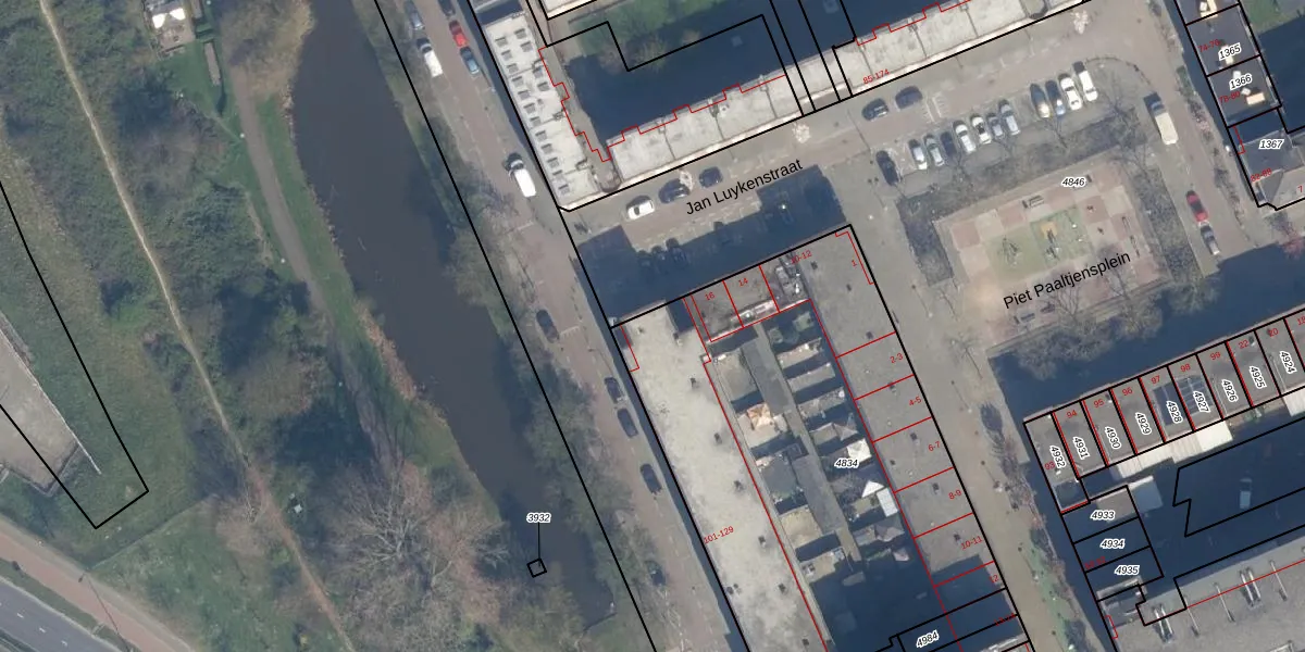 Het perceel waarop Jan Luykenstraat 18 staat heeft een oppervlakte van 2575 m². Dit is een zeer groot perceel. De perceeloppervlakte wordt geregistreerd door het Kadaster. Gedetailleerde informatie over de maten van dit perceel kunt u vinden in het rapport Kadastrale kaart met maatvoering van Jan Luykenstraat 18.