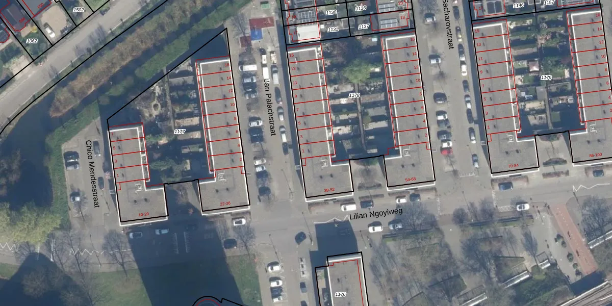 Jan Palachstraat 1 is gelegen op kadastraal perceel KLG00H1178. Deze kadastrale aanduiding is uniek en wordt gebruikt door het Kadaster om eigendomsrechten en andere zakelijke rechten vast te leggen. Het perceel maakt onderdeel uit van de kadastrale gemeente Kralingen.