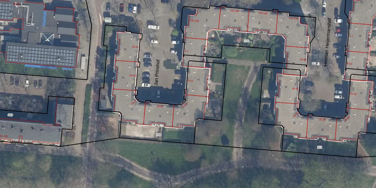Het perceel waarop het adres ligt is RTD04-AE-769. De afkorting 'RTD04' staat voor kadastrale gemeente Rotterdam. Het perceel is met 2140 m² relatief groot. Het gemiddelde ligt in de kadastrale gemeente Rotterdam op 1239,97 m². Het kleinste perceel in de kadastrale gemeente is 0 m² groot. De grootste perceeloppervlakte is 17,3 ha. Op het perceel liggen in totaal 33 adressen. De laatste wijziging in het de Basisregistratie Kadaster (BRK) was op 11-11-2005.