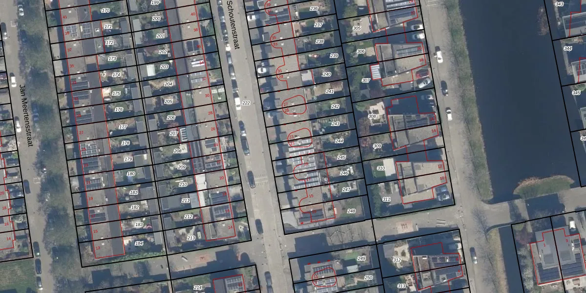 Het perceel waarop Jan Schoutenstraat 21 staat heeft een oppervlakte van 174 m². Dit is een middelgroot perceel. De perceeloppervlakte wordt geregistreerd door het Kadaster. Gedetailleerde informatie over de maten van dit perceel kunt u vinden in het rapport Kadastrale kaart met maatvoering van Jan Schoutenstraat 21.