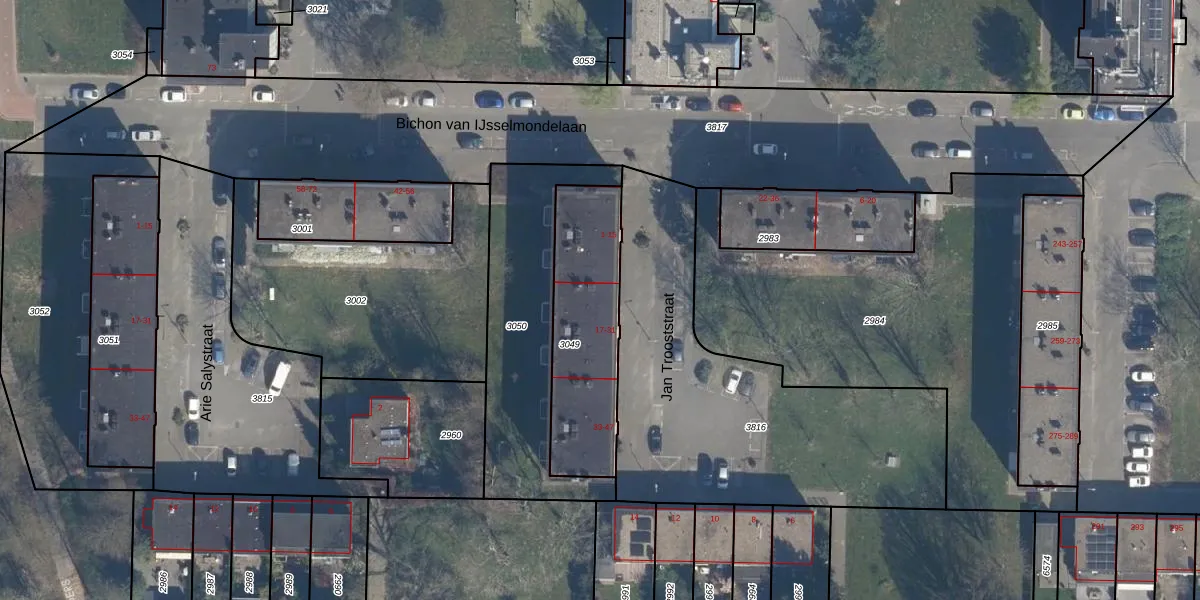 Jan Trooststraat 17 is gelegen op kadastraal perceel ISM01D3049. Deze kadastrale aanduiding is uniek en wordt gebruikt door het Kadaster om eigendomsrechten en andere zakelijke rechten vast te leggen. Het perceel maakt onderdeel uit van de kadastrale gemeente IJsselmonde.