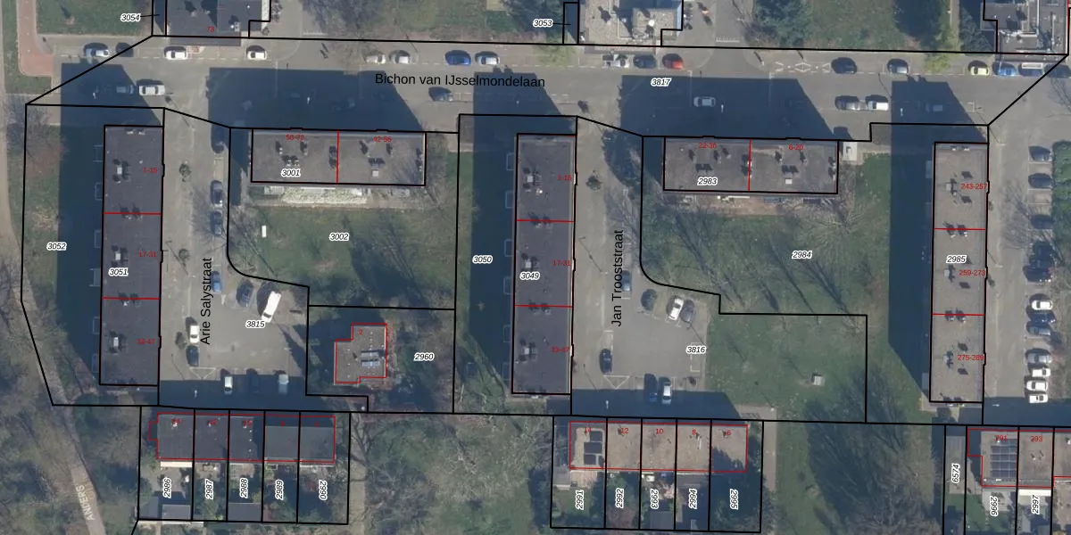 Jan Trooststraat 25 is gelegen op kadastraal perceel ISM01D3049. Deze kadastrale aanduiding is uniek en wordt gebruikt door het Kadaster om eigendomsrechten en andere zakelijke rechten vast te leggen. Het perceel maakt onderdeel uit van de kadastrale gemeente IJsselmonde.