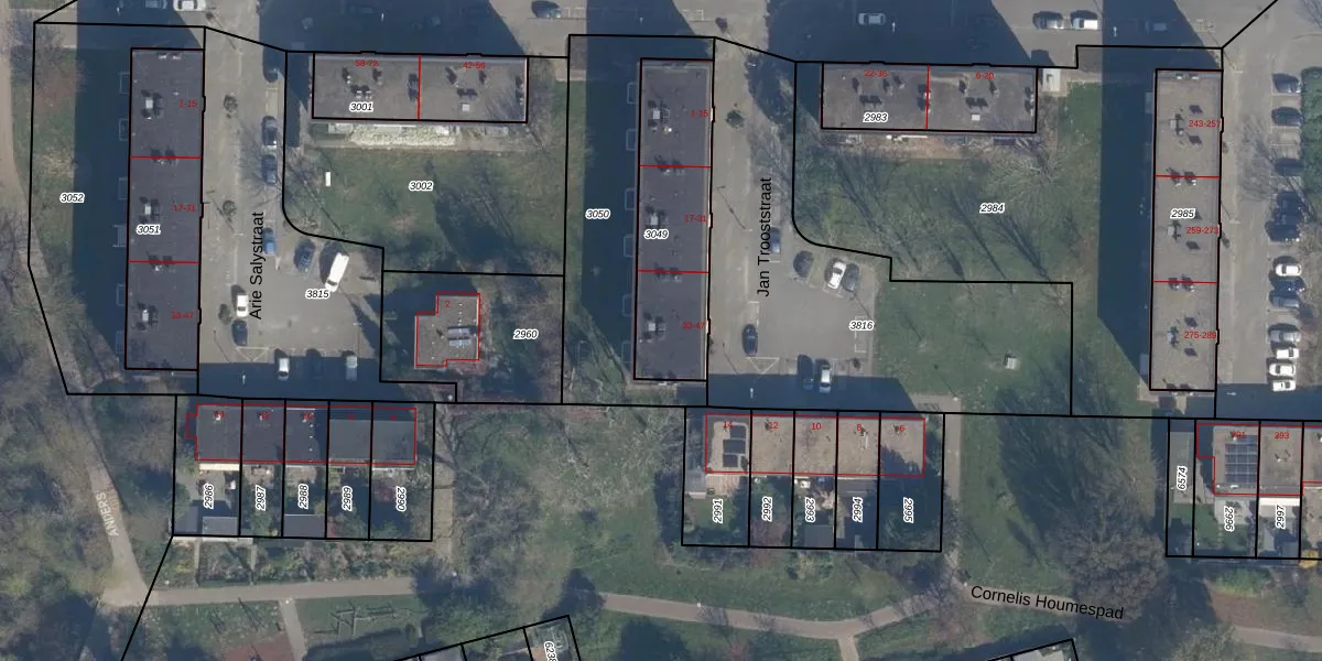 Jan Trooststraat 41 is gelegen op kadastraal perceel ISM01D3049. Deze kadastrale aanduiding is uniek en wordt gebruikt door het Kadaster om eigendomsrechten en andere zakelijke rechten vast te leggen. Het perceel maakt onderdeel uit van de kadastrale gemeente IJsselmonde.