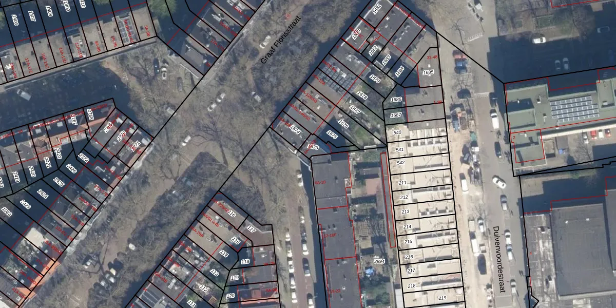 Het perceel waarop het adres ligt is DHV00-I-1673. De afkorting 'DHV00' staat voor kadastrale gemeente Delfshaven. De gemiddelde perceelgrootte in Delfshaven is 628,53 m². Dit perceel is kleiner: de perceeloppervlakte bedraagt 71 m². Het kleinste perceel in de kadastrale gemeente is 0 m² groot. De grootste perceeloppervlakte is 22,2 ha. Op het perceel zijn 3 adressen aanwezig. De laatste wijziging in het de Basisregistratie Kadaster (BRK) was op 13-03-2003.