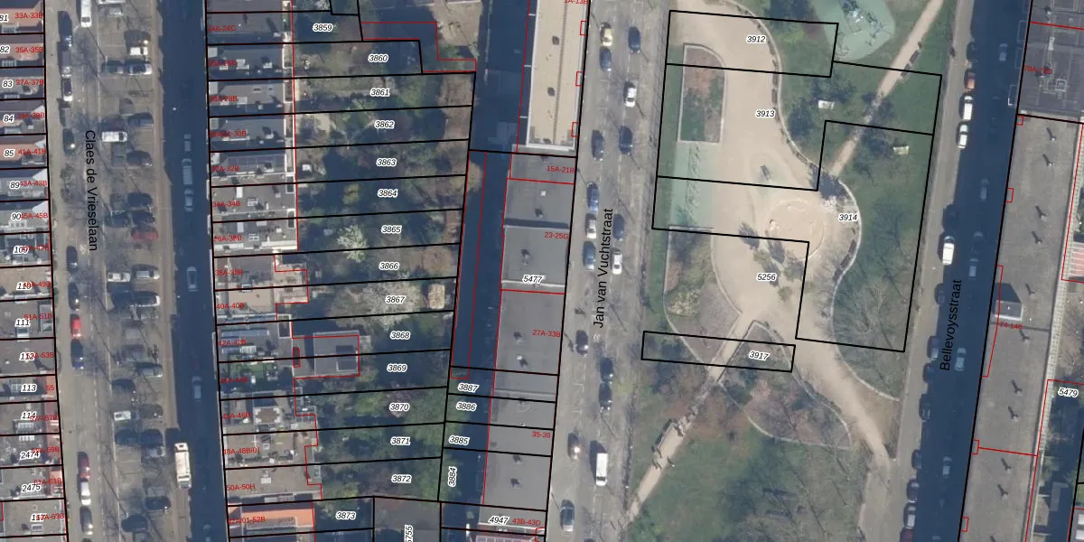 Het perceel waarop Jan van Vuchtstraat 25-F staat heeft een oppervlakte van 800 m². Dit is een groot perceel. De perceeloppervlakte wordt geregistreerd door het Kadaster. Gedetailleerde informatie over de maten van dit perceel kunt u vinden in het rapport Kadastrale kaart met maatvoering van Jan van Vuchtstraat 25-F.