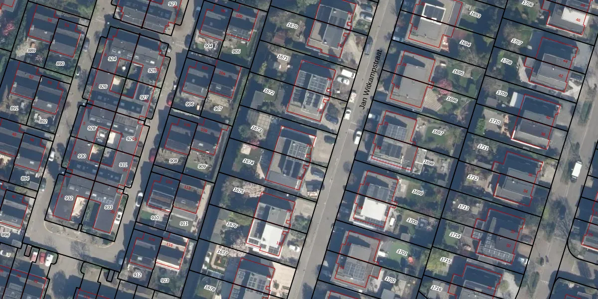 Jan Witkampstraat 24 is gelegen op kadastraal perceel KLG00L1673. Deze kadastrale aanduiding is uniek en wordt gebruikt door het Kadaster om eigendomsrechten en andere zakelijke rechten vast te leggen. Het perceel maakt onderdeel uit van de kadastrale gemeente Kralingen.