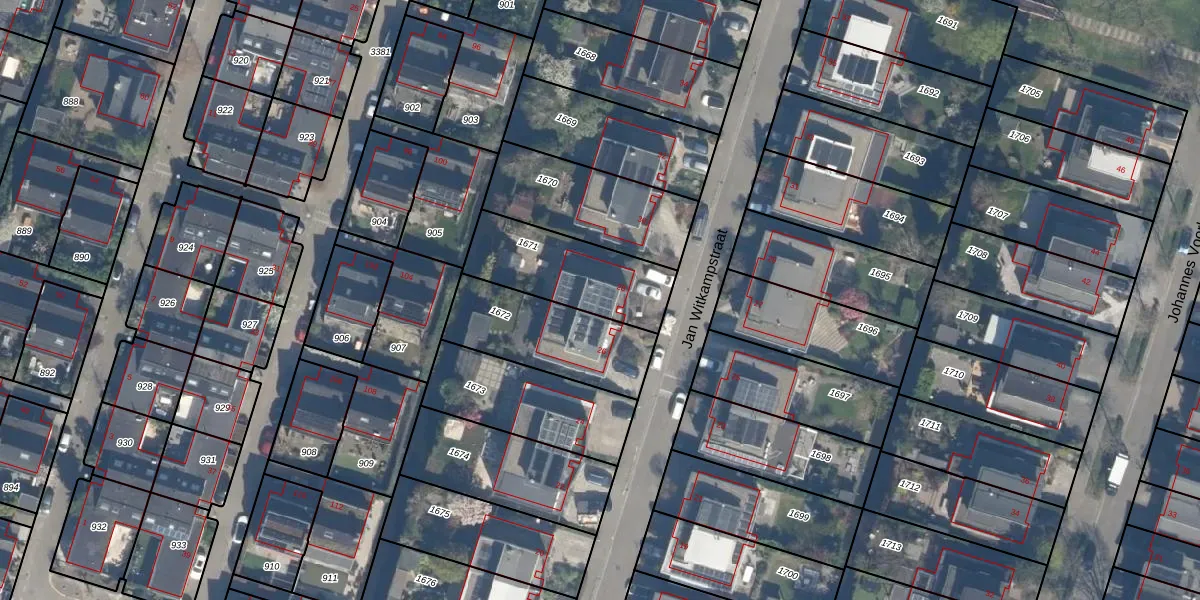 Het perceel waarop Jan Witkampstraat 28 staat heeft een oppervlakte van 395 m². Dit is een groot perceel. De perceeloppervlakte wordt geregistreerd door het Kadaster. Gedetailleerde informatie over de maten van dit perceel kunt u vinden in het rapport Kadastrale kaart met maatvoering van Jan Witkampstraat 28.