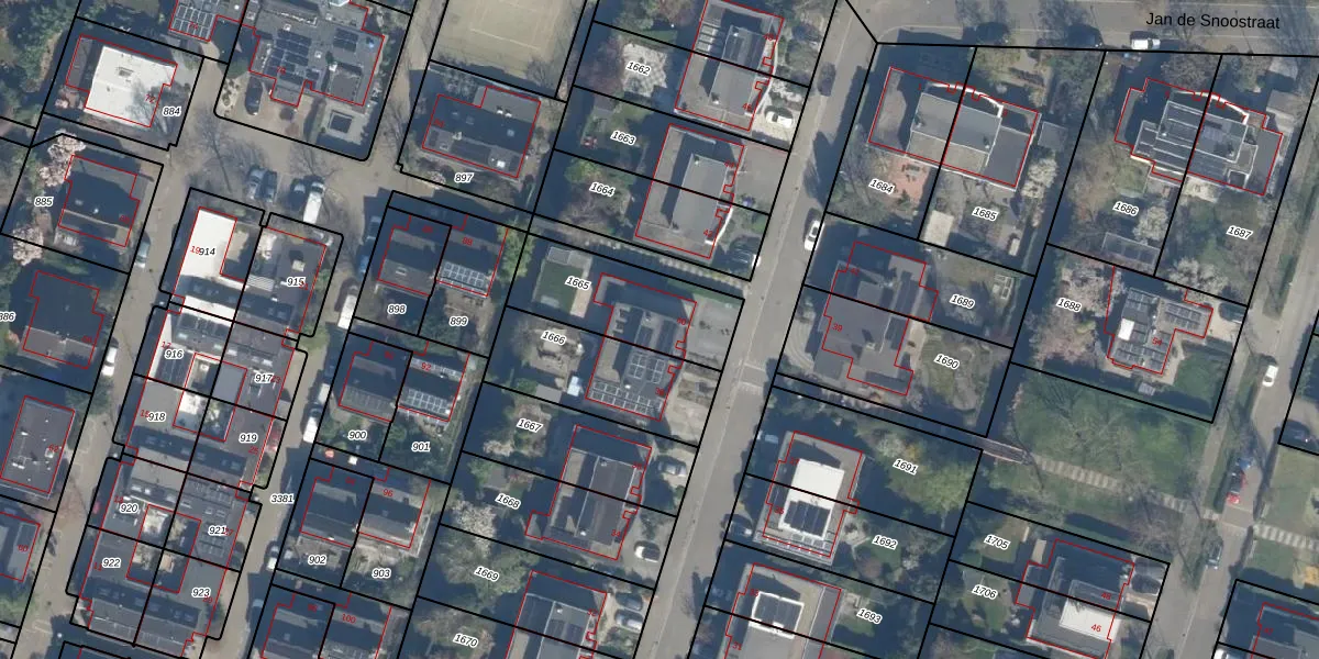 Het perceel waarop Jan Witkampstraat 40 staat heeft een oppervlakte van 395 m². Dit is een groot perceel. De perceeloppervlakte wordt geregistreerd door het Kadaster. Gedetailleerde informatie over de maten van dit perceel kunt u vinden in het rapport Kadastrale kaart met maatvoering van Jan Witkampstraat 40.