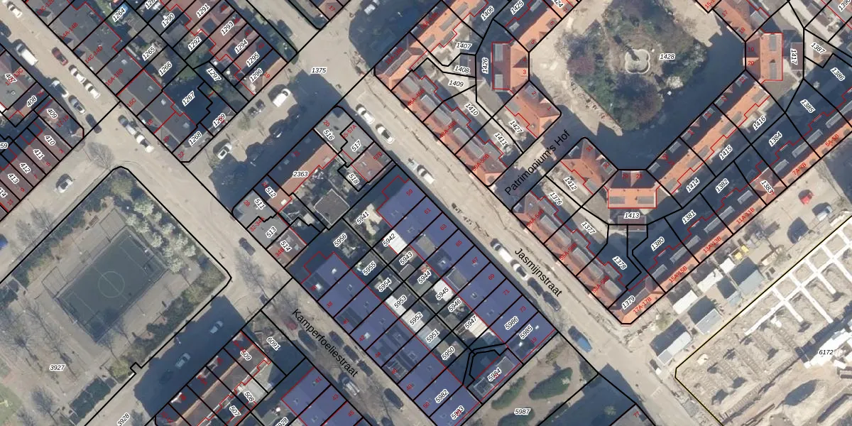 Het perceel waarop Jasmijnstraat 61 staat heeft een oppervlakte van 97 m². Dit is een klein perceel. De perceeloppervlakte wordt geregistreerd door het Kadaster. Gedetailleerde informatie over de maten van dit perceel kunt u vinden in het rapport Kadastrale kaart met maatvoering van Jasmijnstraat 61.