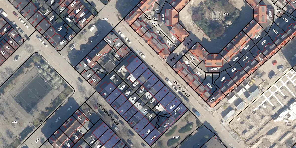 Het perceel waarop Jasmijnstraat 63 staat heeft een oppervlakte van 97 m². Dit is een klein perceel. De perceeloppervlakte wordt geregistreerd door het Kadaster. Gedetailleerde informatie over de maten van dit perceel kunt u vinden in het rapport Kadastrale kaart met maatvoering van Jasmijnstraat 63.