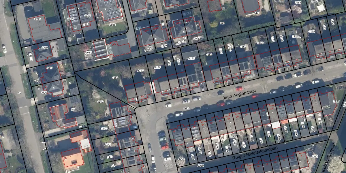 Jean Augierstraat 39 is gelegen op kadastraal perceel KLG00L1165. Deze kadastrale aanduiding is uniek en wordt gebruikt door het Kadaster om eigendomsrechten en andere zakelijke rechten vast te leggen. Het perceel maakt onderdeel uit van de kadastrale gemeente Kralingen.