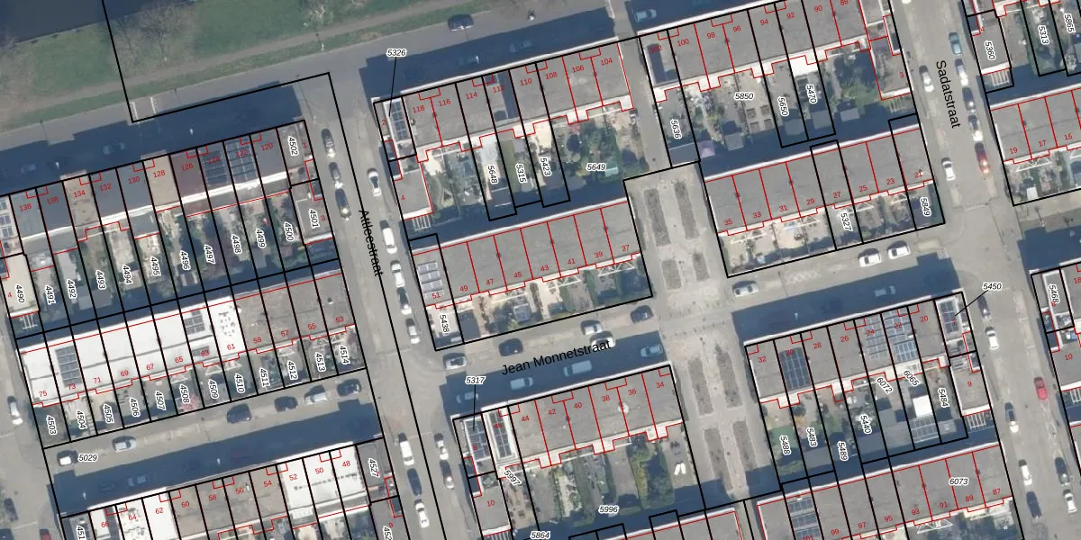 Jean Monnetstraat 43 is gelegen op kadastraal perceel KLG00C5649. Deze kadastrale aanduiding is uniek en wordt gebruikt door het Kadaster om eigendomsrechten en andere zakelijke rechten vast te leggen. Het perceel maakt onderdeel uit van de kadastrale gemeente Kralingen.
