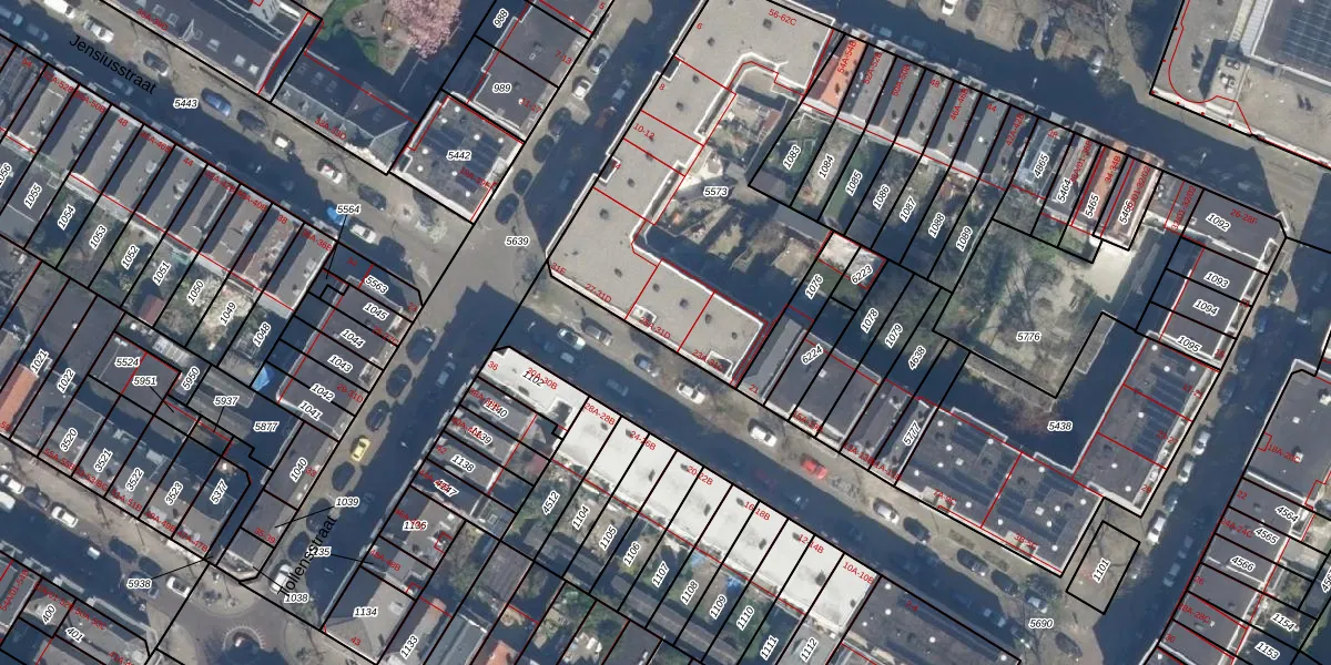 Het perceel waarop Jensiusstraat 25-B staat heeft een oppervlakte van 1428 m². Dit is een zeer groot perceel. De perceeloppervlakte wordt geregistreerd door het Kadaster. Gedetailleerde informatie over de maten van dit perceel kunt u vinden in het rapport Kadastrale kaart met maatvoering van Jensiusstraat 25-B.