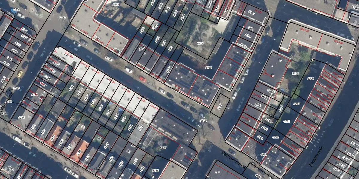 Het adres is gelegen op perceel 5438 in de sectie W en de kadastrale gemeente Rotterdam. De kadastrale aanduiding is aldus RTD07-W-5438. Het perceel is met 995 m² relatief groot. Het gemiddelde ligt in de kadastrale gemeente Rotterdam op 506,86 m². Het kleinste perceel in de kadastrale gemeente is 0 m² groot. De grootste perceeloppervlakte is 10,8 ha. Op het perceel zijn 18 adressen aanwezig. In de Basisregistratie Kadaster (BRK) werden de grenzen van het perceel geregistreerd op 10-06-2004.