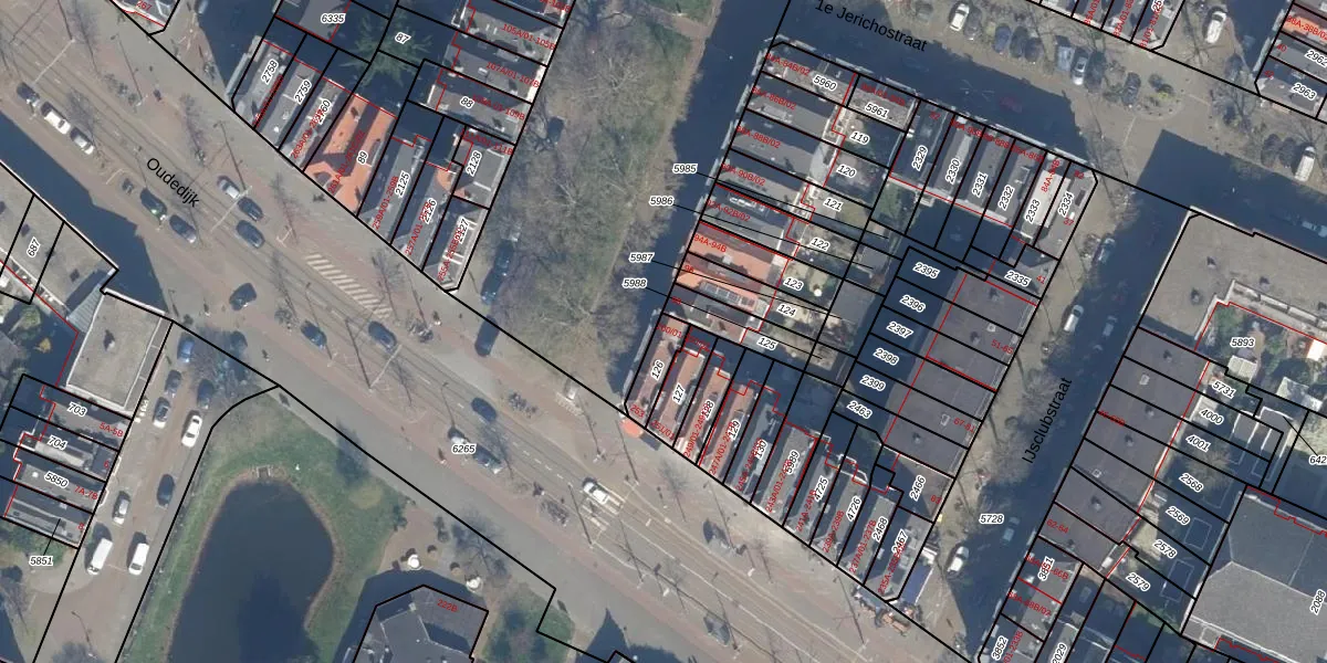 Jericholaan 100-01 is gelegen op kadastraal perceel KLG00G126. Deze kadastrale aanduiding is uniek en wordt gebruikt door het Kadaster om eigendomsrechten en andere zakelijke rechten vast te leggen. Het perceel maakt onderdeel uit van de kadastrale gemeente Kralingen.