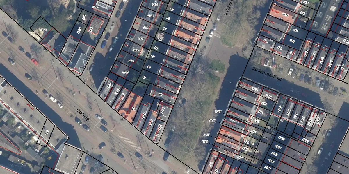 Jericholaan 107-A-01 is gelegen op kadastraal perceel KLG00G87. Deze kadastrale aanduiding is uniek en wordt gebruikt door het Kadaster om eigendomsrechten en andere zakelijke rechten vast te leggen. Het perceel maakt onderdeel uit van de kadastrale gemeente Kralingen.