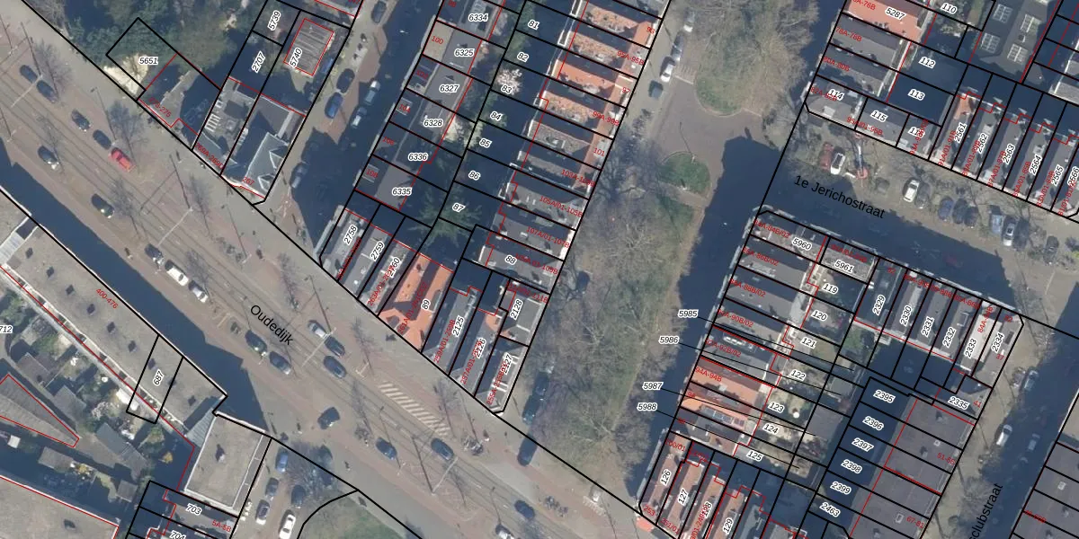 Het perceel waarop Jericholaan 109-B staat heeft een oppervlakte van 112 m². Dit is een middelgroot perceel. De perceeloppervlakte wordt geregistreerd door het Kadaster. Gedetailleerde informatie over de maten van dit perceel kunt u vinden in het rapport Kadastrale kaart met maatvoering van Jericholaan 109-B.