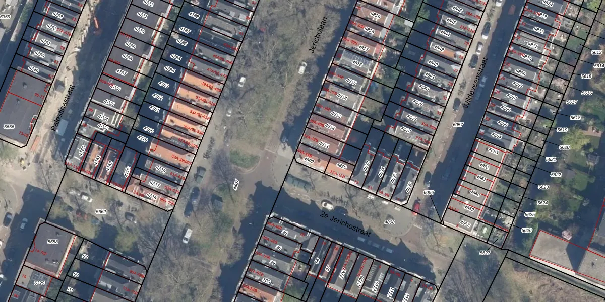 Jericholaan 44-B is gelegen op kadastraal perceel KLG00G4809. Deze kadastrale aanduiding is uniek en wordt gebruikt door het Kadaster om eigendomsrechten en andere zakelijke rechten vast te leggen. Het perceel maakt onderdeel uit van de kadastrale gemeente Kralingen.