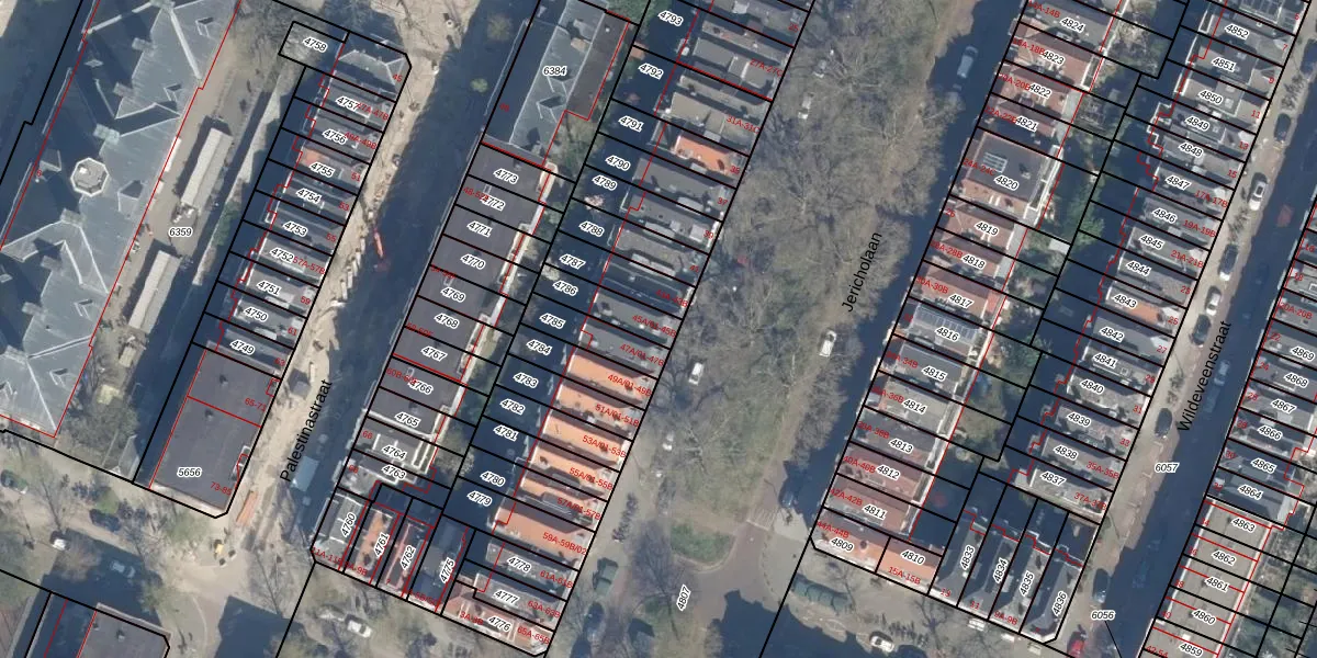 Jericholaan 45-A-01 is gelegen op kadastraal perceel KLG00G4786. Deze kadastrale aanduiding is uniek en wordt gebruikt door het Kadaster om eigendomsrechten en andere zakelijke rechten vast te leggen. Het perceel maakt onderdeel uit van de kadastrale gemeente Kralingen.