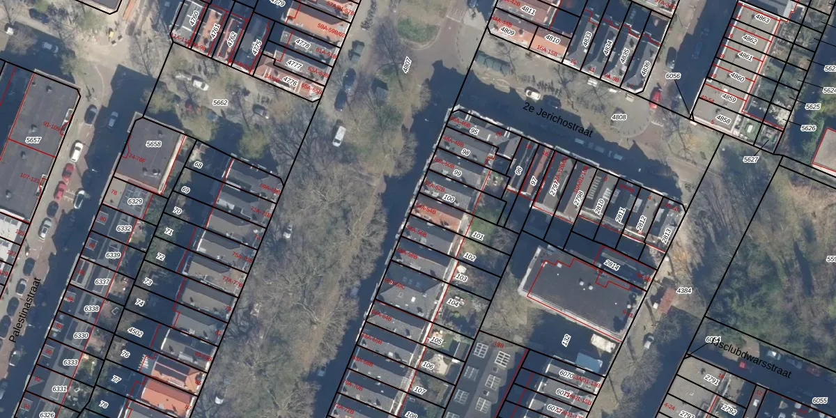 Jericholaan 54-B is gelegen op kadastraal perceel KLG00G101. Deze kadastrale aanduiding is uniek en wordt gebruikt door het Kadaster om eigendomsrechten en andere zakelijke rechten vast te leggen. Het perceel maakt onderdeel uit van de kadastrale gemeente Kralingen.
