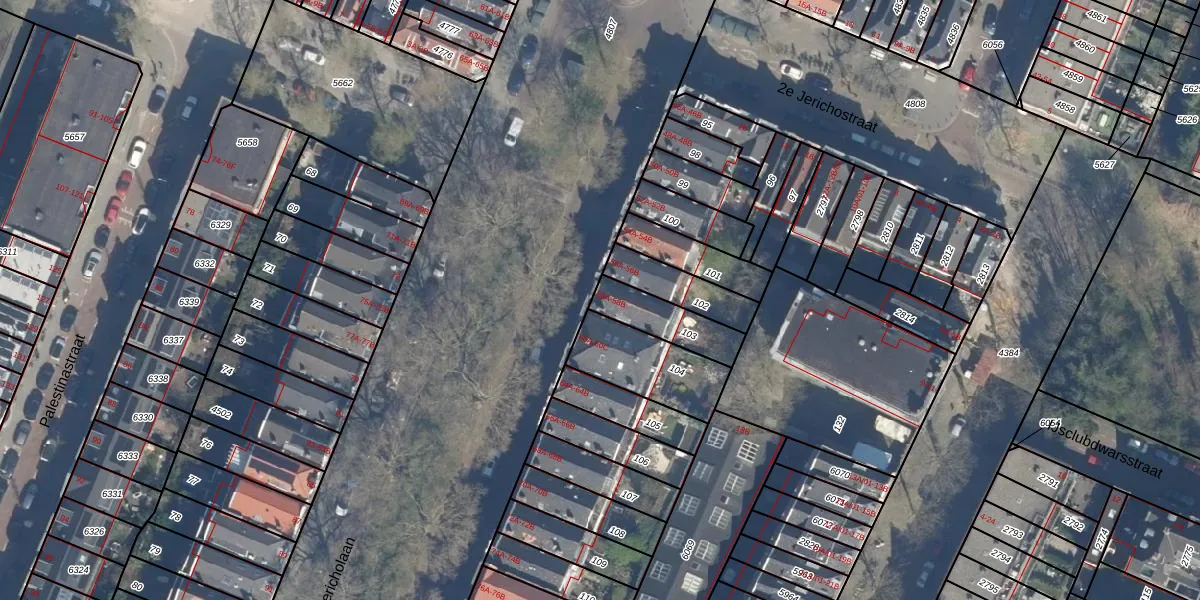 Jericholaan 58-A is gelegen op kadastraal perceel KLG00G103. Deze kadastrale aanduiding is uniek en wordt gebruikt door het Kadaster om eigendomsrechten en andere zakelijke rechten vast te leggen. Het perceel maakt onderdeel uit van de kadastrale gemeente Kralingen.